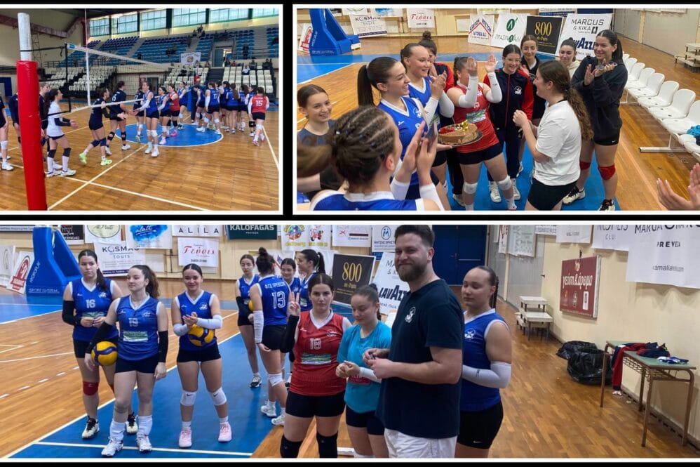 Η χαρά της νίκης συνδυάστηκε με την τούρτα έκπληξη που έφεραν τα κορίτσια και τη μικρή γιορτή για τα γενέθλια της συμπαίκτριας του Γεωργάκου Αντωνίνας.