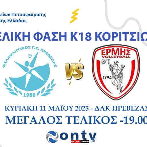 Η μεγάλη ώρα για την ομάδα Κ-18 κορασίδων του ΦΙΛΑΘΛΗΤΙΚΟΥ έφτασε. Τη Κυριακή 11-5-2025 στις 19:00 στο ΔΑΚ ΠΡΕΒΕΖΑΣ η ομάδα μας θα αντιμετωπίσει τον ΕΡΜΗ ΗΓΟΥΜΕΝΙΤΣΑΣ στο μεγάλο τελικό που θα αναδείξει τη πρωταθλήτρια […]