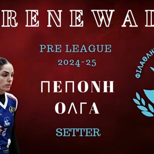 Και τη νέα σεζόν η πασαδόρος Όλγα Πεπόνη θα προσφέρει τις υπηρεσίες της στην ομάδα του Φιλαθλητικού Πρέβεζας. Η 26χρονη πασαδόρος ήρθε στις τάξεις του Φιλαθλητικού την περσινή περίοδο και προσέφερε τον καλύτερό της εαυτό, […]