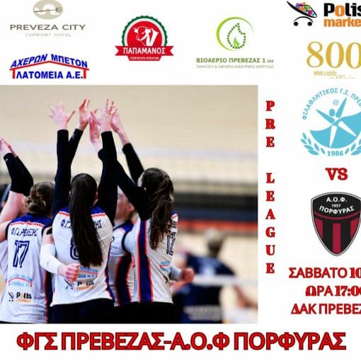 Μια τεράστιας βαθμολογικής σημασίας νίκη πέτυχε ο Φ.Γ.Σ Πρέβεζας στο ΔΑΚ Πρέβεζας, το απόγευμα του Σαββάτου για την 16η αγωνιστική του πρωταθλήματος της Pre League κατηγορίας γυναικών στο βόλεϊ, κερδίζοντας άνετα τον Πορφύρα με 3-0 […]